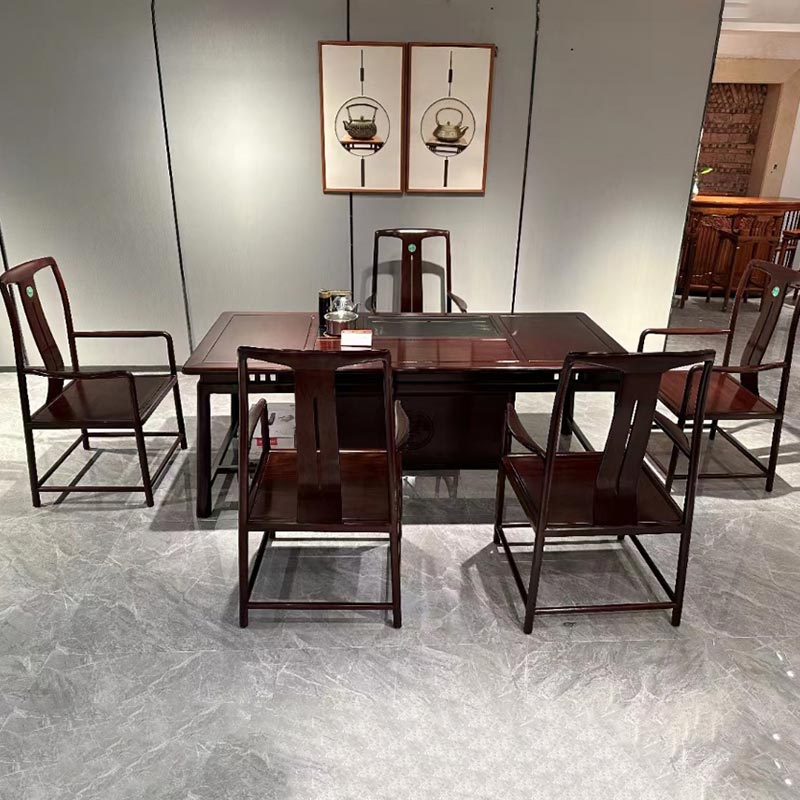 Biztos lehet benne, hogy új kínai egyszerű teaasztalt vásárol gyárunkból. A Chuantianjiang Redwood Factory által gondosan elkészített, értékes ébenfából készült. Maga az ébenfa kiváló anyagból, kemény fából és gyönyörű textúrájú, amely kiváló minőségű alapot teremt a teaasztalhoz. A New Chinese Simple Tea Table masszív anyagokból készült, és minden komponensről érezhető a vastagság és a valóság, biztosítva a teásasztal stabilitását és tartósságát. A fotel kialakítása hangulatos és előkelő. A forma szempontjából a karfák vonalai simaak és természetesek, ami megfelel az ergonómiának. Az általános dizájn egyszerű, integrálja az új kínai stílust és divatos légkört mutat.